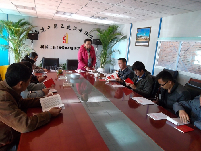 2012年12月13日,第五直管部黨支部組織潤城項目部學(xué)習(xí)了新黨章,在會上為黨員們發(fā)放新黨徽,并要求今后黨員必須佩戴黨徽上班。 由于工期緊,項目部不能集中進(jìn)行詳細(xì)的學(xué)習(xí),黨支部書記周雯給大家簡要講解了《新黨章》和十八大精神,然后將兩項內(nèi)容的學(xué)習(xí)資料發(fā)到了每一名黨員的手中。 第五直管部潤城項目部目前共有7名黨員。 第五直管部 王海燕/攝影報道