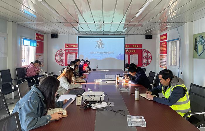 2月13日,直九部在五華區(qū)右營村新建中學項目組織管理人員開展“全面從嚴治黨永遠在路上”專題警示教育會。廉潔從業(yè),與我們每一個管理人員的工作日常息息相關,人人都需自查自省。會議介紹了集團全面從嚴治黨形勢、政治生態(tài)狀況及存在的問題、原因,通過對典型案例的學習,敲響廉潔從業(yè)的警鐘?!耙话咽帧备瘮?、監(jiān)督缺失,決策不民主、作風問題易發(fā)多發(fā)、濫用職權,違規(guī)決策,違規(guī)套取工程款等問題屢禁不絕,警示我們要持續(xù)加強…