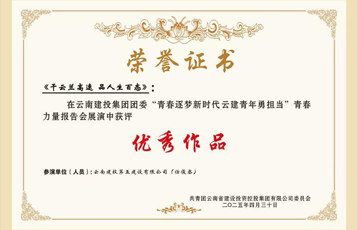2025年五四青年節(jié),集團(tuán)舉辦“青春逐夢新時(shí)代 云建青年勇?lián)?dāng)”青春力量報(bào)告會。展演中,由公司團(tuán)委、市政路橋四部聯(lián)合編創(chuàng)的脫口秀《干云蘭高速,品人生百態(tài)》作品獲評“優(yōu)秀作品”。公司市政路橋四部團(tuán)支部書記任俊丞以游戲副本作為脫口秀主線,講述修建云蘭高速過程中體會到的人生百態(tài)。生動展現(xiàn)了五建青年在高速公路建設(shè)中的熱血拼搏與敬業(yè)奉獻(xiàn),贏得現(xiàn)場觀眾的陣陣掌聲與廣泛贊譽(yù)。公司團(tuán)委將繼續(xù)秉持初心,緊跟集團(tuán)團(tuán)委…
